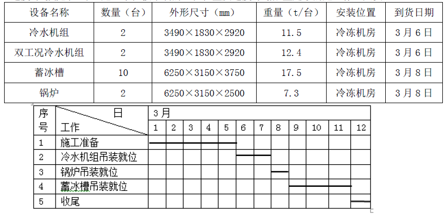 3.(1)在设备吊装进度表中,“先吊装锅炉,后吊装蓄冰槽”不合理。