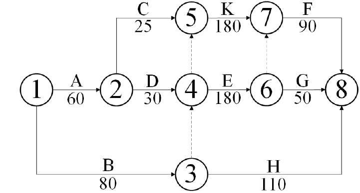 业主通过招标与甲压力管道公司签订了安装合同,此项目包括A,B,C,D,E,F,G,H八项工作。业主与乙锅炉压力容器公司签订了设备安装施工合同。通过相互协调,编制了网络进度计划,如图所示,其中K工作为设备安装与调试。