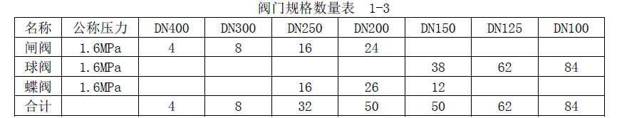 施工中,采购的第一批阀门(见表1-3)按计划到达施工现场,施工人员对阀门开箱检查,并按规范要求进行了强度和严密性试验,主干管上起切断作用的DN400、DN300阀门及其余阀门均无渗漏,验收合格。