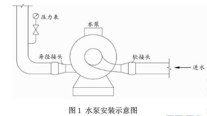 在水泵施工质量验收时,监理人员指出水泵的进水管接头和压力表安装存在质量问题(见图1水泵安装示意图),要求施工人员返工,返工后质量验收合格。