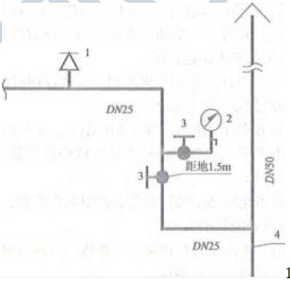 1-最不利点喷头;2-压力表组;3-球阀;4-排水管