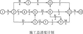1.施工总承包单位提交的施工总进度计划的工期是多少个月 指出该工程总进度计划的关键线路(以节点编号表示)。