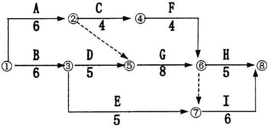 某建设单位(甲方)与某施工单位(乙方)订立了某工程项目的施工合同。合同规定:采用单价合同,每一分项工程的工程量增减超过10%时,需调整工程单价。合同工期为25天,工期每提前1天奖励3000元,每拖后1天罚款5000元。乙方在开工前及时提交了施工网络进度计划如图所示,并得到甲方代表的批准。