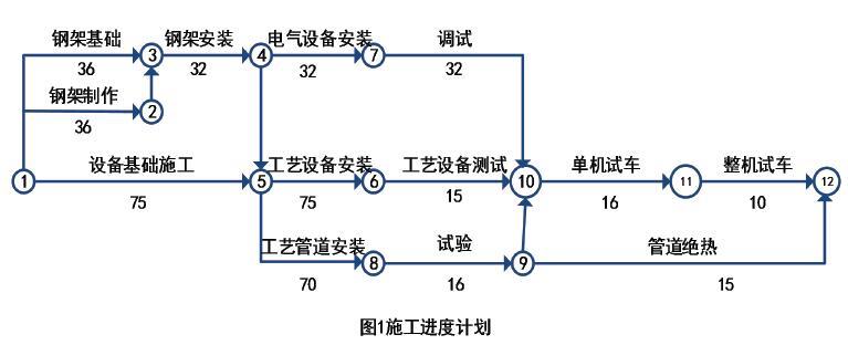 建设单位通过招标与施工单位签署了某工业项目的施工合同,主要工作内容包含设备基础、钢架基础、设备钢架制作安装、工艺设备、工艺管道,电气和仪表设备安装等。开工前施工单位按照合同约定向建设单位提交了施工进度计划(如图1)。
