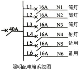 事件2:因商业广告需要,在商场某区域增加了40套广告灯箱(荧光灯40W×3),施工人员把40套灯箱接到就近的射灯照明N4回路上(如图),在照明通电调试时,N4回路开关跳闸。施工人员又将额定电流为16A开关调换为32A开关,被监理检查发现,后经整改才通过验收。