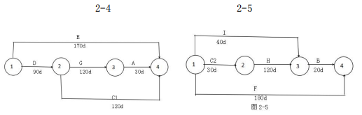 事件一:施工单位根据工程具体情况和合同工期要求,将主要工作内容均安排在非汛期施工。工程所在地汛期为7~9月份。施工单位分别绘制了两个非汛期的施工网络进度计划图,如图2-1和图2-2所示。