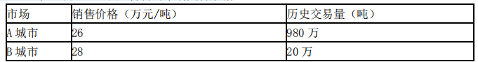 2×18 年 12 月 31 日,甲公司在非同一控制下的企业合并业务中获得一批存货(100吨某原材料)。在购买日,甲公司应当以公允价值计量这批存货。根据市场交易情况,该原材料在 A城市和 B 城市有两个活跃的交易市场。甲公司能够进入这两个市场,并能够取得该存货在这两个市场的交易数据,如下表所示。