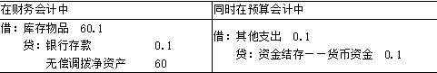 2×21年5月5日,某行政单位接受其他部门无偿调入物资一批,该批物资在调出方的账面价值为60万元,经验收合格后入库。物资调入过程中该单位以银行存库支付了运输费0.1万元。财会部门根据有关凭证,不考虑相关税费。