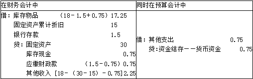 2×21年6月30日,某行政单位经批准以其1部公务轿车置换另一单位的办公用品(不符合固定资产确认标准)一批,办公用品已验收入库。该轿车账面余额30万元,已计提折旧15万元,评估价值为18万元。置换过程中该单位收到对方支付的补价1.5万元已存入银行,另外以现金支付运输费0.75万元。不考虑其他因素。