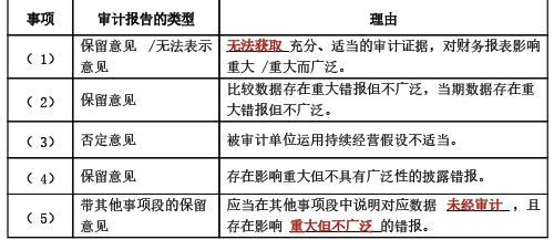 针对上述第( 1)至第( 5)项,逐项指出 A注册会计师应当出具何种类型的非无保留意见审计报告,并简要说明理由。