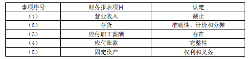 根据上述第(1)至(5)项,逐项指出审计程序与哪个财务报表项目的哪个认定相关(每个审计程序仅限一个项目的一个认定)。