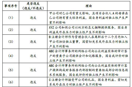 (1)项目合伙人A注册会计师的母亲在乙公司持有重大经济利益。乙公司为甲公司不重要的联营企业,不是ABC会计师事务所的审计客户。