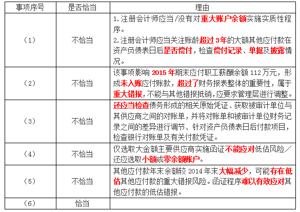 (1)甲公司有一笔账龄三年以上金额重大的其他应付款,因2015年未发生变动,A注册会计师未实施进一步审计程序。