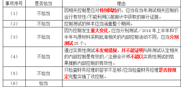 (3)甲公司与原材料采购批准相关的控制每日运行数次,审计项目组确定样本规模为25个。考虑到该控制自2014年7月1日起发生重大变化,审计项目组从上半年和下半年的交易中分别选取12个和13个样本实施控制测试。