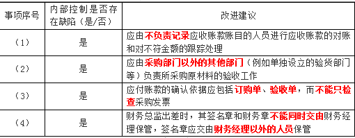 根据上述资料第(1)项至第(4)项,假定不考虑其他条件,逐项判断被审计单位相关内部控制是否存在缺陷。如果存在缺陷,简要提出改进建议。