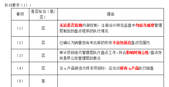(4)审计项目组按存货项目定义抽样单元,选取a产品为抽盘样本项目之一。a产品分布在5个仓库中,考虑到监盘人员安排困难,审计项目组对其中3个仓库的a产品执行抽盘,未发现差异,对该样本项目的抽盘结果满意。