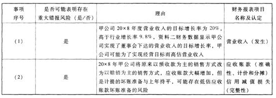 (1)甲公司上市后营业收入保持稳定增长,每年增长10%左右。20×8年2月,甲公司董事会向管理层下达20×8年度经营目标,其中要求20×8年度营业收入较20×7年度至少增长20%。20×9年1月,市场研究机构发布的报告显示,20×8年铝制品行业营业收入增长率为9.8%。
