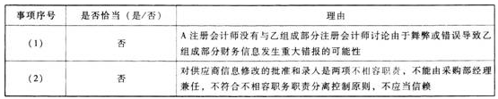 (2)甲公司将经批准的合格供应商信息录入信息系统形成供应商主文档,生产部员工在信息系统中填制连续编号的请购单时只能选择该主文档中的供应商。供应商的变动需由采购部经理批准,并由其在系统中更新供应商主文档。A注册会计师认为该内部控制设计合理,拟予以信赖。