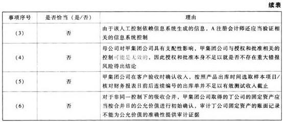 (3)针对资料四第(1)至(6)项,假定不考虑其他条件,逐项指出A注册会计师的处理是否恰当。如不恰当,简要说明理由。