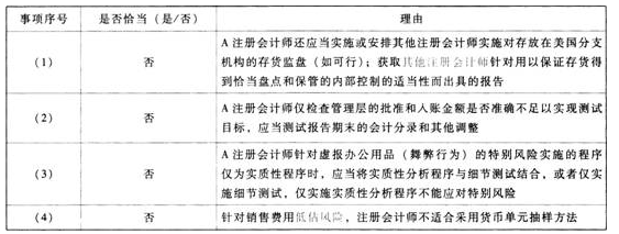 (4)针对资料五第(1)至(4)项,假定不考虑其他条件,逐项指出A注册会计师的处理是否恰当。如不恰当,简要说明理由。