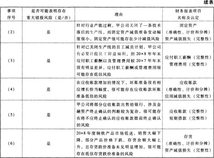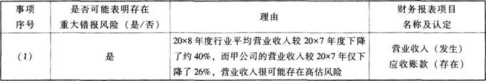 (1)针对资料一第(1)至(6)项,结合资料二,假定不考虑其他条件,逐项指出资料一所列事项是否可能表明存在重大错报风险。