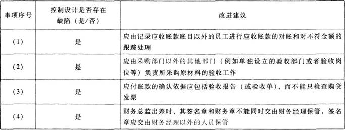 (2)针对资料三中的第(1)至(4)项,假定不考虑其他条件,逐项判断甲公司的相关内部控制是否存在缺陷。如果存在缺陷,简要提出改进建议。