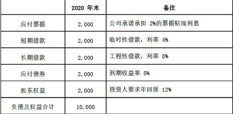 来源不同的资本具有不同的资本成本,将公司各项长期资本的成本加权平均,就得到加权平均资本成本。因此应付票据、短期借款不考虑,只考虑长期借款、应付债券、股东权益,长期资本合计 6000万元。加权平均资本成本 =8%×(1-25%)×(2000+2000)/6000+12%×2000/6000=8%。