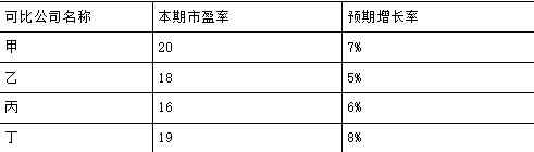 A公司是一家制造医疗设备的上市公司,每股收益是2.6元,预期增长率是6%,为了评估A公司的股票价值,投资者收集了以下4个可比公司的有关数据。