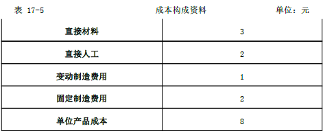 某企业 A产品的生产能力为 10000件,目前的正常订货量为 8000件,销售单价 10元,产品单位产品的成本为 8元,成本构成如表 17-5所示。