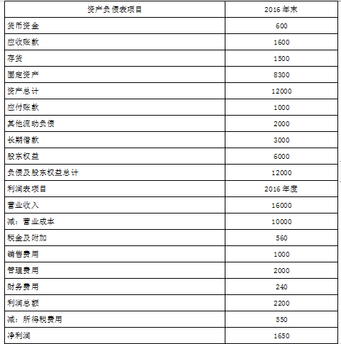 (1)甲公司2016年主要财务数据:(单位:万元)