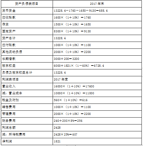 (3)销售部门预测2017年公司营业收入增长率为10%。