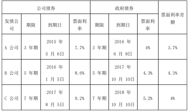 (2)公司债券的平均风险补偿率=(3.7%+4.3%+4%)/3=4%