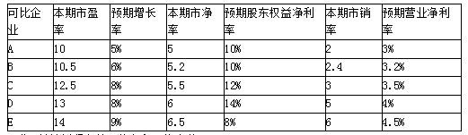 甲企业今年每股收益为0.5元/股,预期增长率为7.8%,每股净资产为1.2元/股,每股收入为2元/股,预期股东权益净利率为10.6%,预期营业净利率为3.4%。假设同类上市企业中与该企业类似的有5家,但它们与该企业之间尚存在某些不容忽视的重大差异,相关资料见下表: