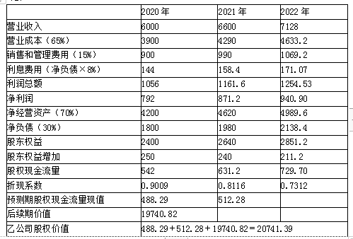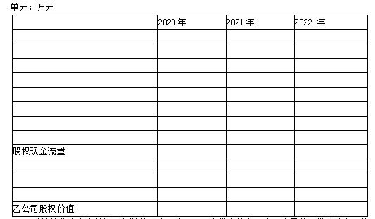 (2)如果收购,采用股权现金流量折现模型,估计2020年初乙公司股权价值(计算过程和结果填入下方表格中)。