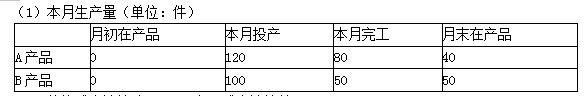 由于直接材料在生产开始时一次投入,所以,A产品直接材料单位成本=15000/(80+40)=125(元/件);