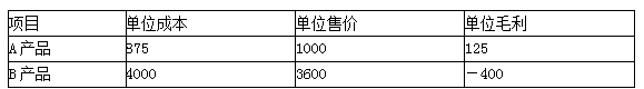 (3)因为A产品单位成本1148元大于目前的单位售价1000元,所以A产品定价不合理。B产品单位成本3407元低于原来的单位售价3600元,所以B产品定价合理。