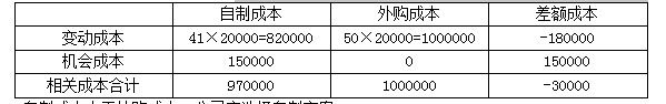 甲公司是一家汽车制造企业,生产汽车每年所需零部件20000个,可以自行生产,也可以向外部的零部件供应商采购。如果外购的话,外购成本每个50元。如果自制的话,目前企业已有的生产车间有能力制造这种零部件,自制的单位相关成本资料如下表所示: