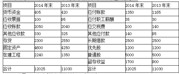 (1)甲公司2013年末和2014年末资产负债表如下:(单位:万元)