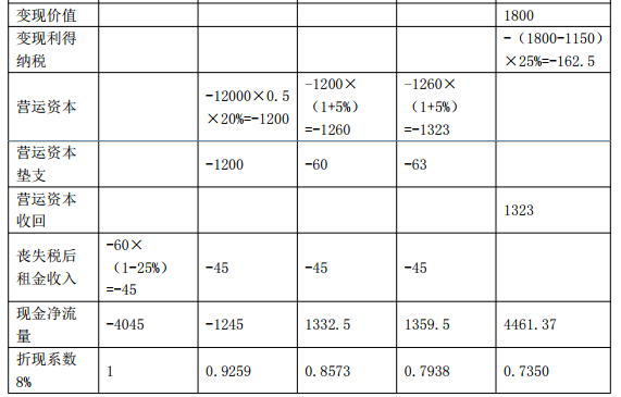 (2)公司有一闲置厂房拟对外出租,每年租金60万元,在出租年度的上年年末收取。该厂房可用于安装该生产线,安装期间及投产后,该厂房均无法对外出租。