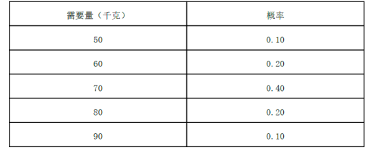 ( 2)交货期内平均需求 =50× 0.1+60× 0.2+70× 0.4+80× 0.2+90× 0.1=70(千克)