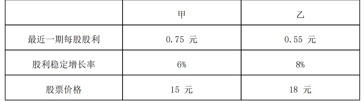 甲、乙公司已进入稳定增长状态,股票信息如下: