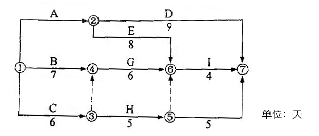 关键线路有2条;①②⑥⑦,①④⑥⑦;c工序最早完成时间:6天;c工序后道工序有:G、H;G工序最早开始时间:7天;H工序最早开始时间:6天;C的自由时差:7-6=1;6-6=0。