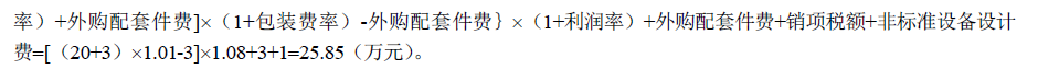 已知国内制造厂生产某非标准设备所用材料费、加工费、辅助材料费、专用工具费、废品损失费共20 万元,外购配套件费3 万元,非标准设备设计费1 万元,包装费率为1%,利润率为8%,若其他费用不考虑,则该设备的原价为( )。