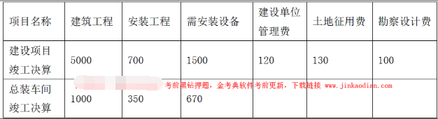 某工业建设项目及其总装车间的建筑工程费、安装工程费、需安装设备费以及应摊入费用如下表所示,计算总装车间新增固定资产价值为( )万元。