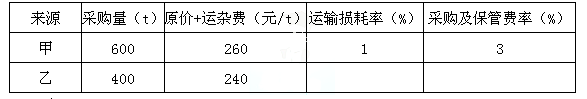 (2016年)从甲、乙两地采购某工程材料,采购量及有关费用如下表所示,该工程材料的材料单价为()元/t。注:下表中的数据为不含税价格: