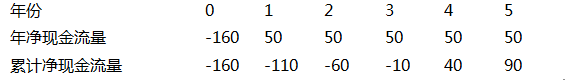 静态回收期=(4-1)+10÷50=3.2(年)。