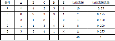 (2013年考题)采用0-4评分法确定产品各部件功能重要性系数时,各部件功能得分见下表,则部件A的功能重要性系数是()。