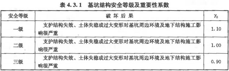 基坑结构安全等级分为三级,排桩与桩墙其适用条件如下:适于基坑侧壁安全等级一、二、三级;悬臂式结构在软土场地中不宜大于5m;当地下水位高于基坑底面时,宜采用降水、排桩与水泥土桩组合截水帷幕或采用地下连续墙;用逆作法施工。