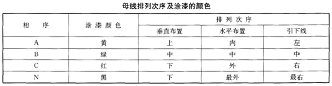 这道题的考点是母线的安装。母线排列次序及涂漆的颜色见下表。