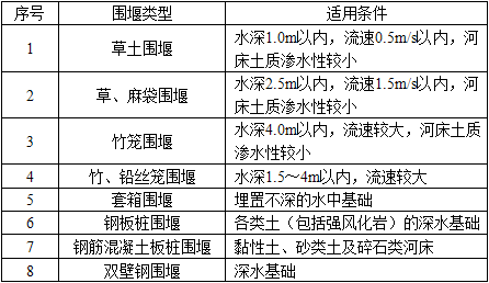 不同水深和地质条件的基础围堰见表2。由表可知,双壁钢围堰适用于深水基坑。